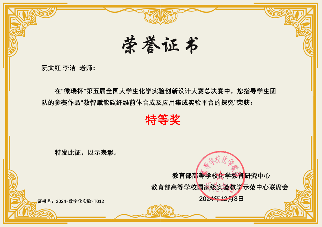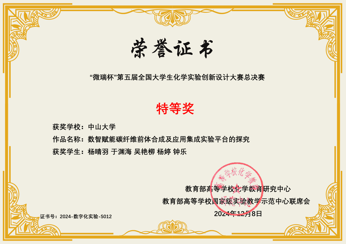 导航痕迹 性奴 化学国家级实验教学示范中心 化学竞赛 第五届 (2024年和2025年) 全国大学生创新实验设计竞赛 性奴 -数字化实验-总决赛特等奖 扫描此二维码分享 性奴 -数字化实验-总决赛特等奖 发布人:网站管理员 发布日期:2025-10-09 获奖作品:数智赋能碳纤维前体合成及应用集成实验平台的探究