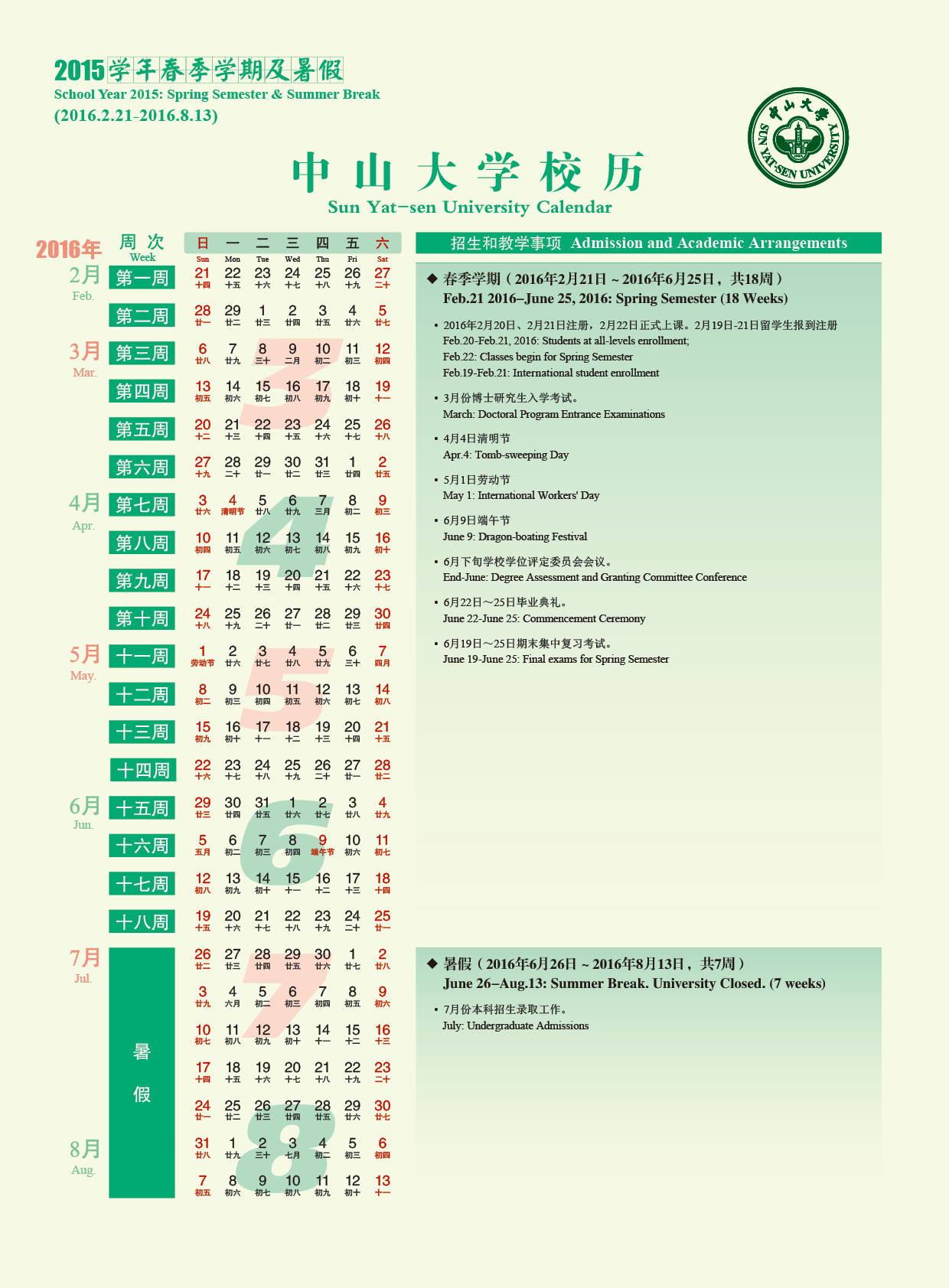 请下载并查看附件的2015学年第三学期(春季)化学与化学工程学院本科生课程表和校历。