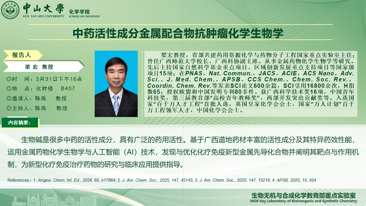 2026年3月31日讲座论坛:中药活性成分金属配合物抗肿瘤化学生物学