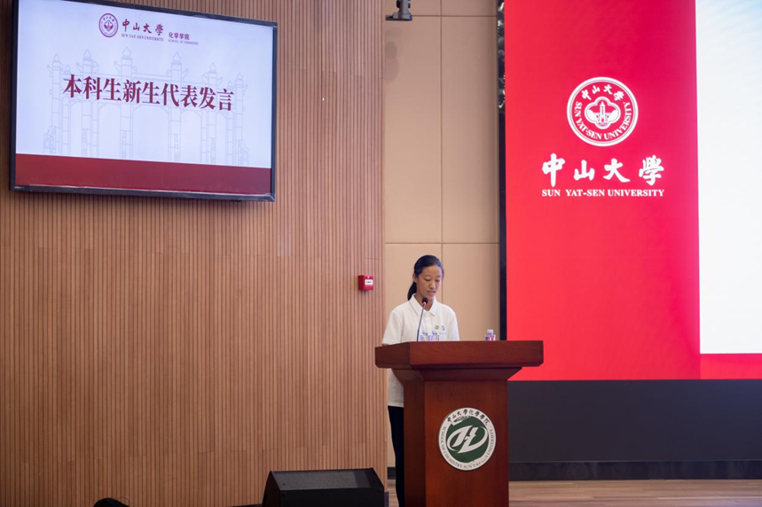 本科生老生代表老生代表杨晴羽同学分享了大学成长的心得体会,呼吁新同学在做好课业学习和学术科研的基础上,积极参加社团与社会活动,丰富大学生活。